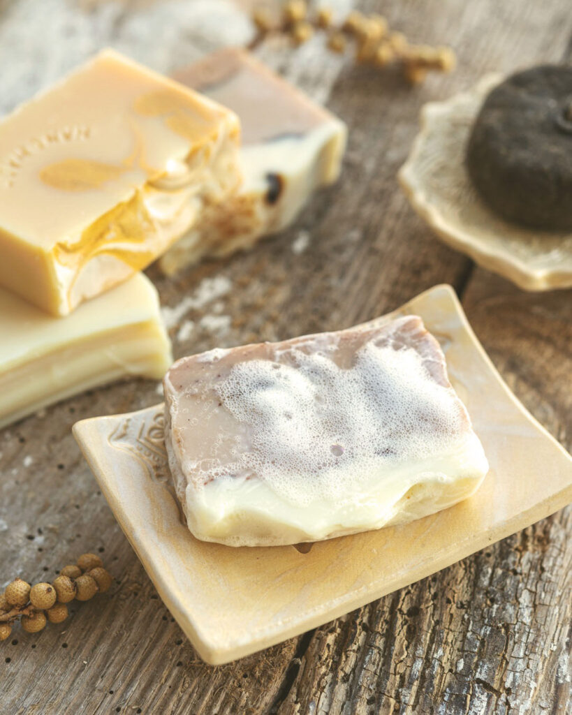 1. Dobrze skomponowane mydło w kostce spokojnie zastępuje balsam do ciała, żel pod prysznic, a czasem nawet szampon. Zamiast trzech dużych butelek masz jedną kostkę, która zajmuje tyle miejsca co nic.