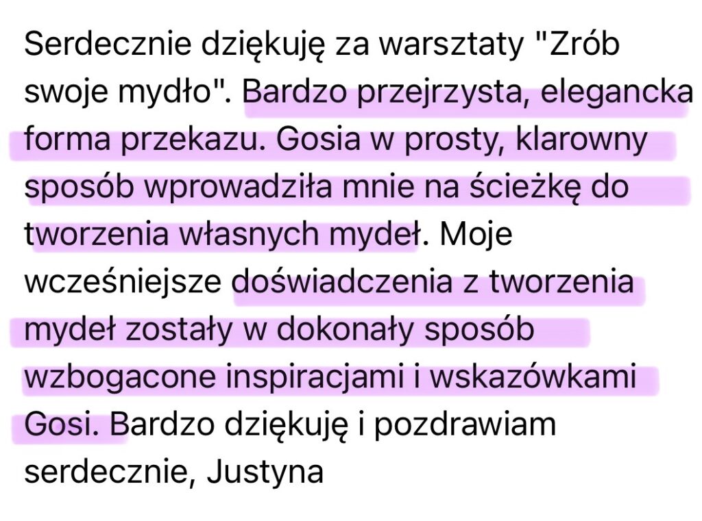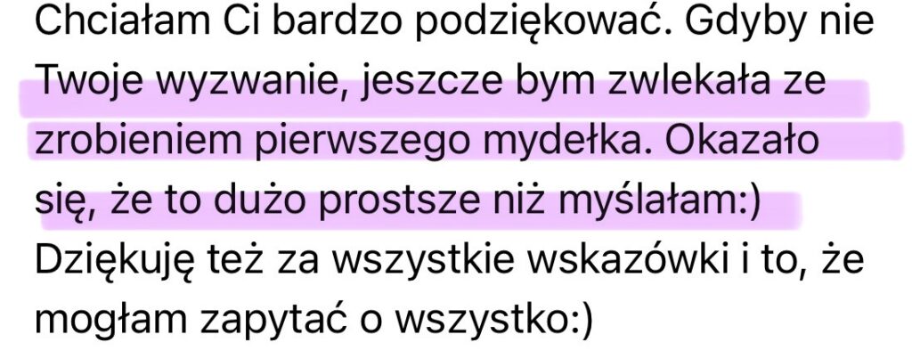 Dziś, w Mydlanych Rewolucjach, dzielę się tą wiedzą i pomagam przejść od pierwszych prób do momentu, w którym mydlenie daje spokój i pewność. Chcę, żeby Twoje pierwsze mydło było udane, a każde kolejne już czystą przyjemnością.