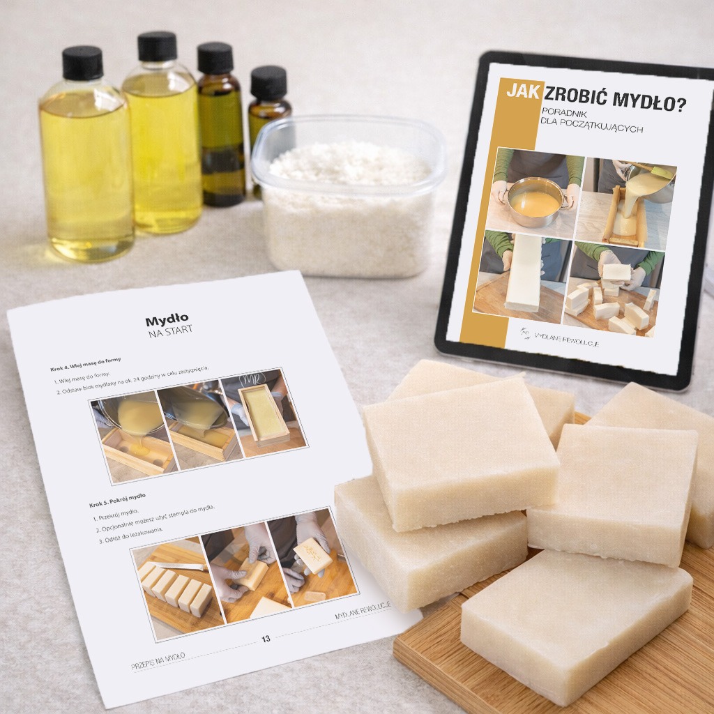 • Ebook „Jak zrobić mydło?” – to obszerna książka, która da Ci podstawy tworzenia mydeł.